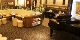 営業中はプロのアーティストによるピアノやチェロ、フルートなどの生演奏も行われます。